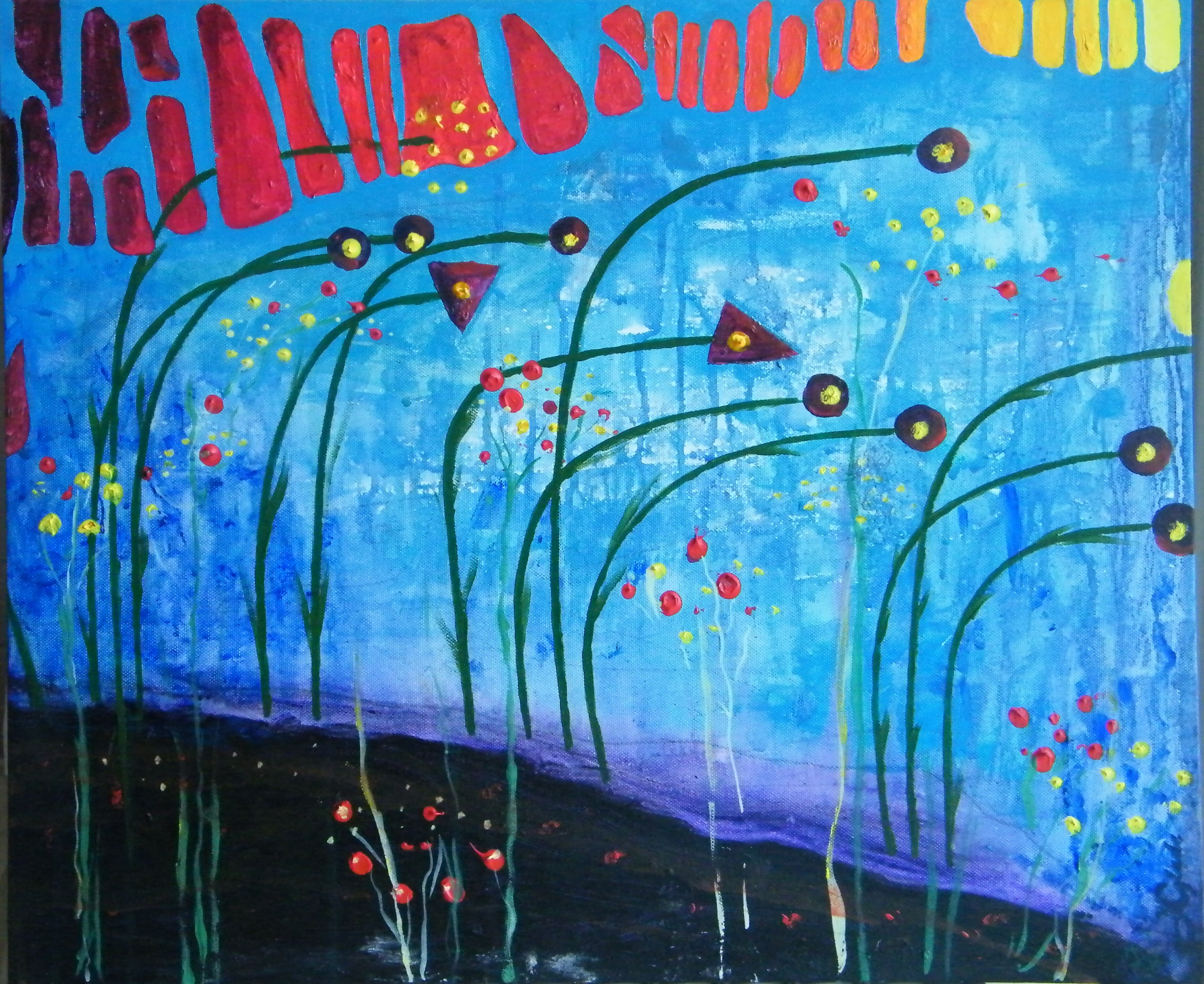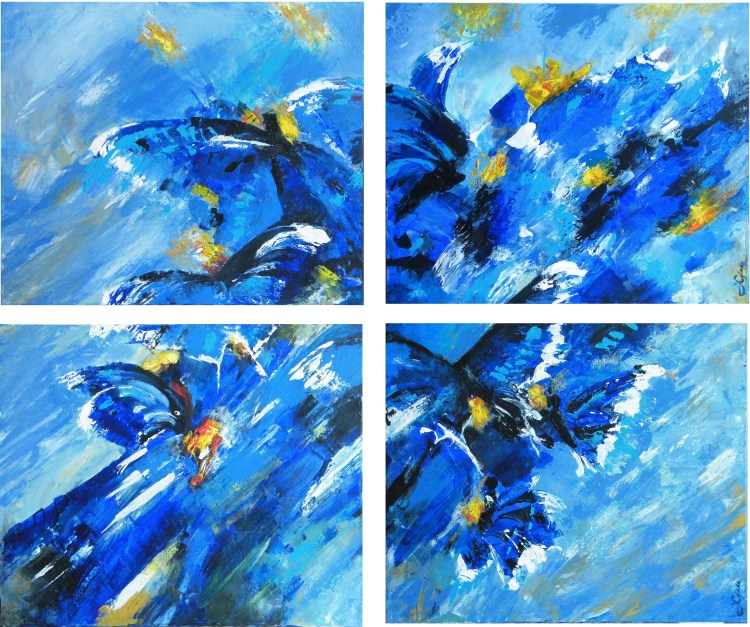 Meine Acrylwerke (60 * 50 cm) stellen Impressionen von Land, Natur und Architektur der Region dar. Die Bilder sind ohne viele Skizzen und gedankliche Bildfixirungen entstanden. Sie beeindrucken mit ihren satten Farben und Formen sowie ihrer Naivität. So vermitteln sie viel Freiheit und Spontanität, wodurch die Freude bei der Betrachtung entsteht. Beim Malen fasziniert mich der Prozess vom Forschen und Experimentieren, Interpretieren und Umsetzen.