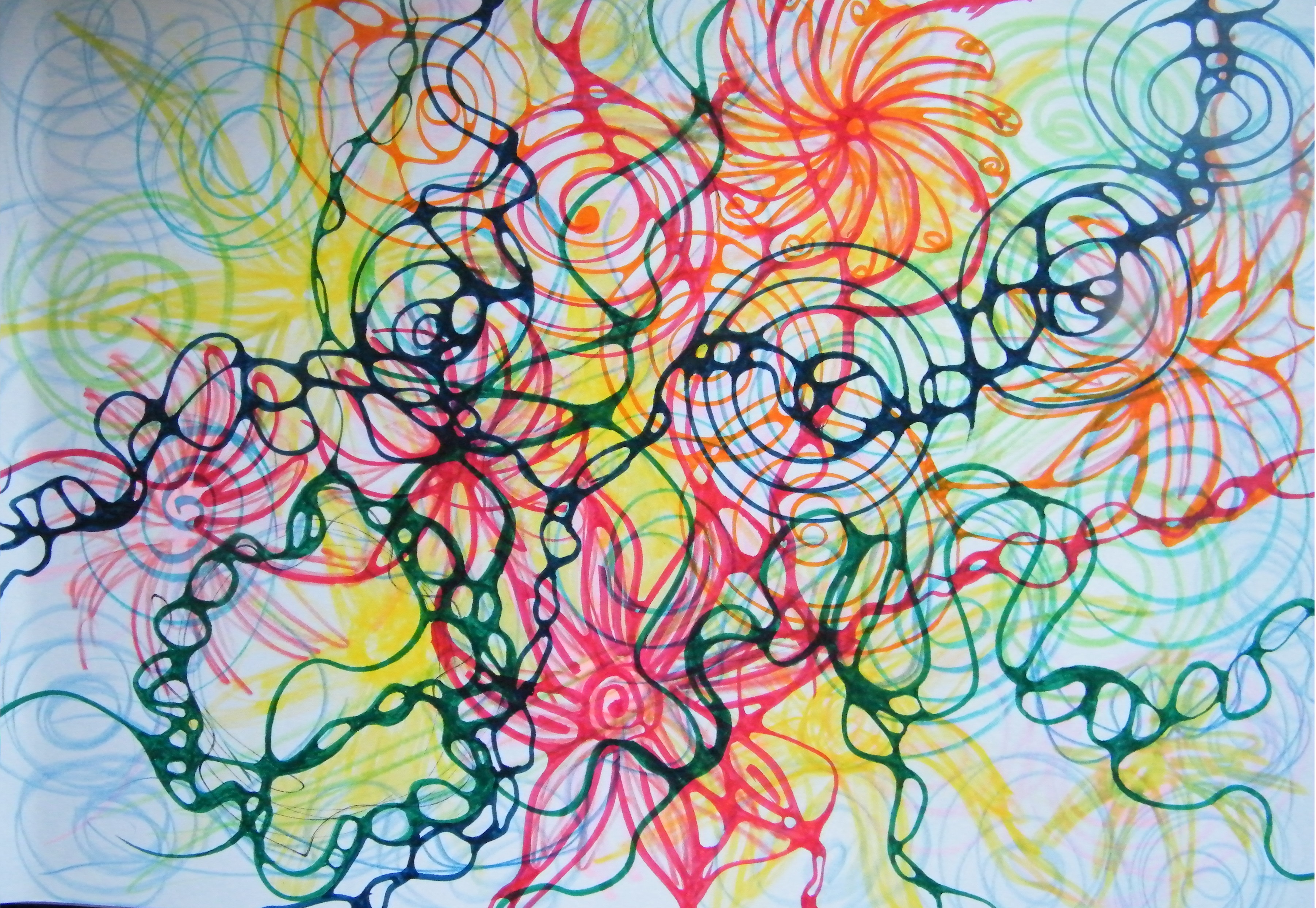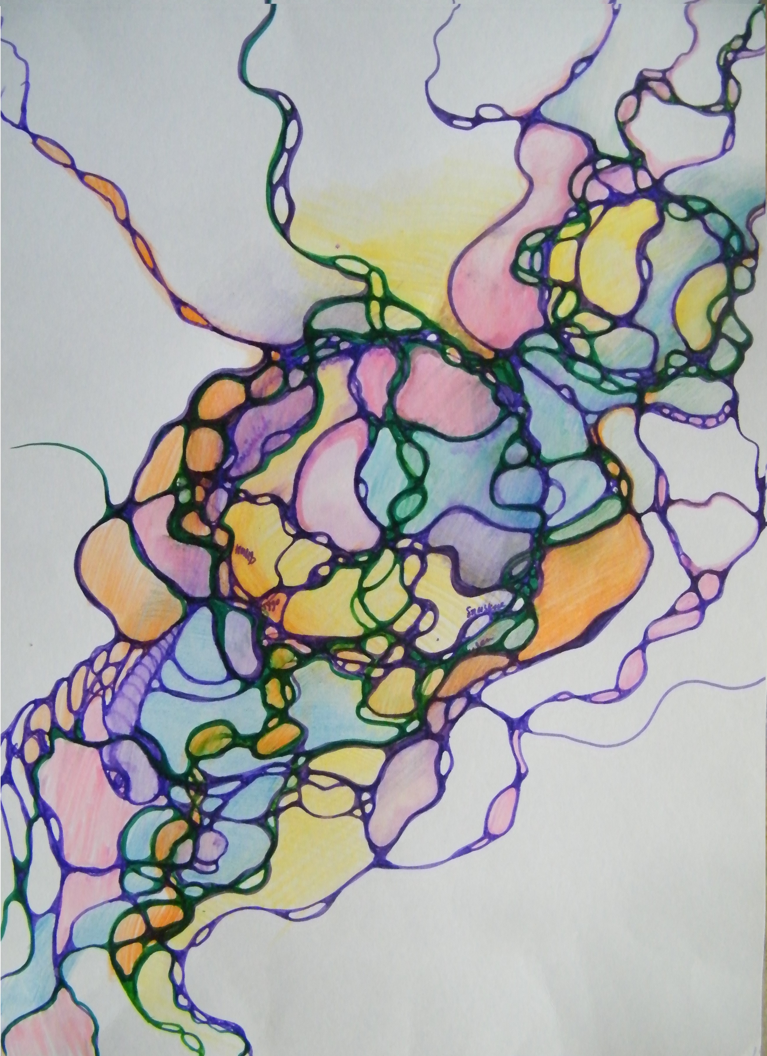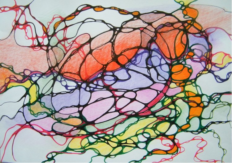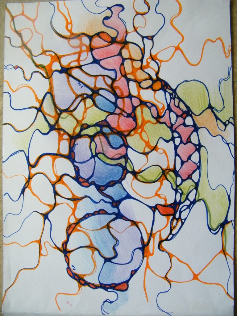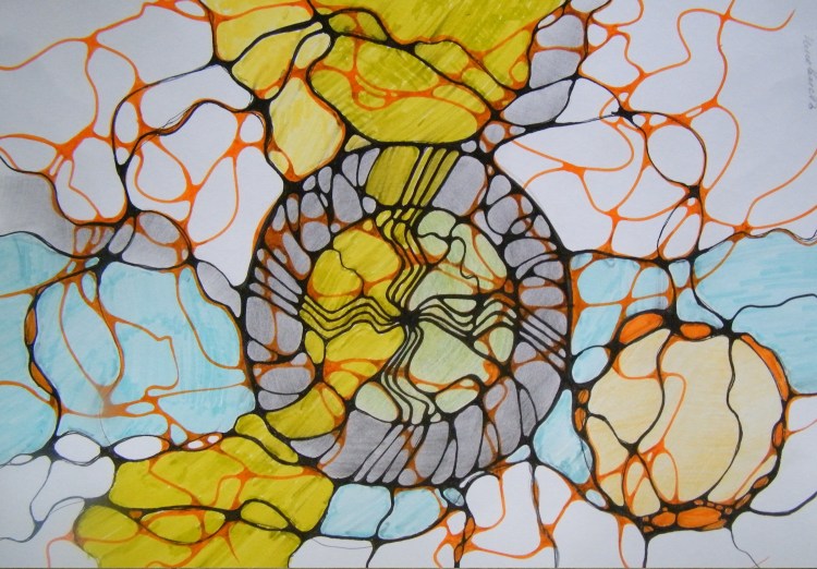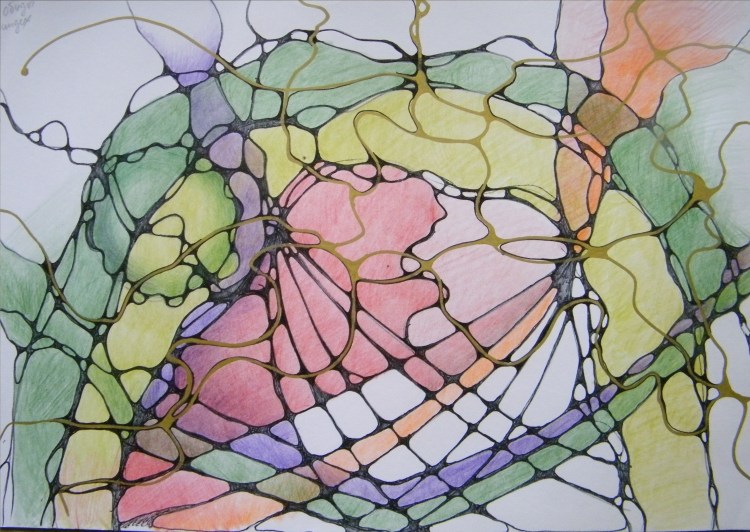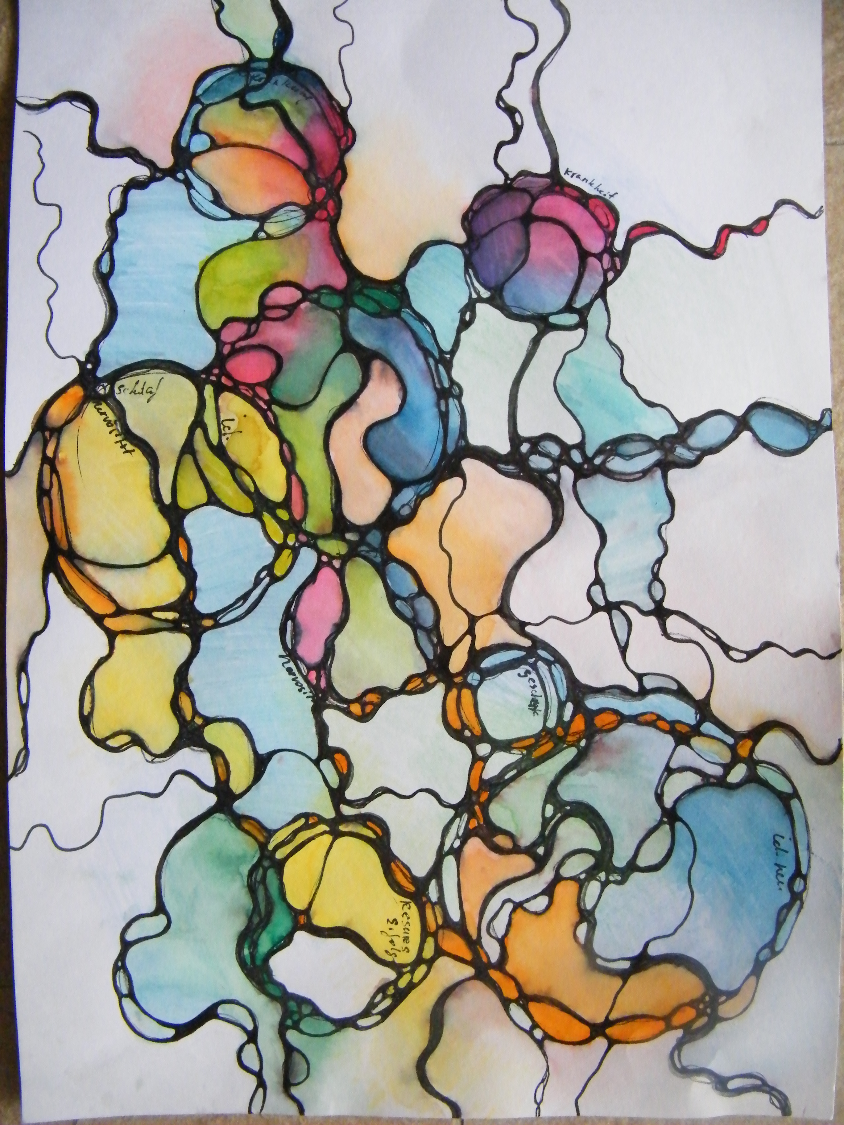 Mit meinem Streben nach Bewusstseinserweiterung und mit meinem neuen Verständnis der Wechselbeziehung von Sprache und Bild sind diese Werke entstanden.