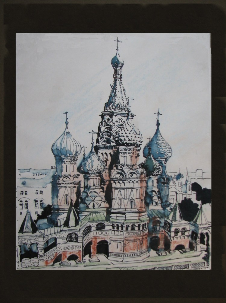 Ilona Glade: Moskou, Basilius-Kathedrale (Tinte, Pastel)