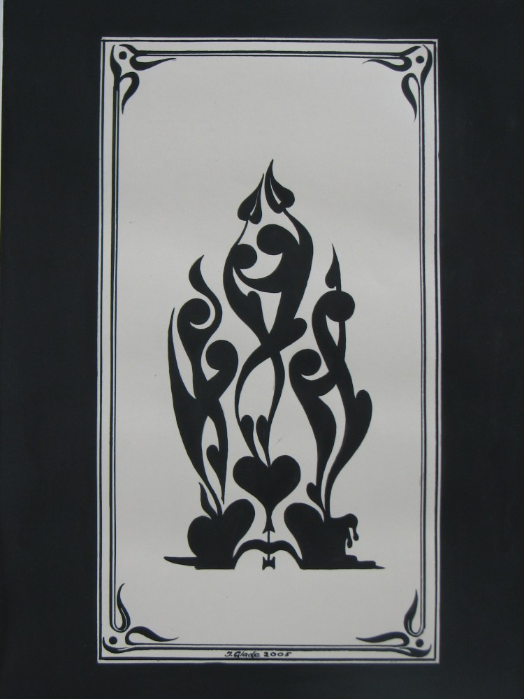 Ilona Glade: Kerzen und Herzen (Tusche, Fotopapier)