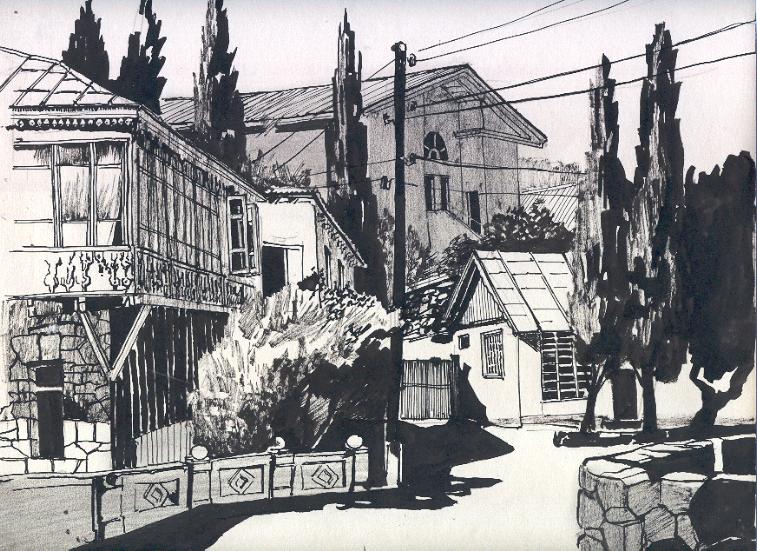 Ilona Glade: Krim, Alupka (Tusche -Fingertupfen, Pinsel)