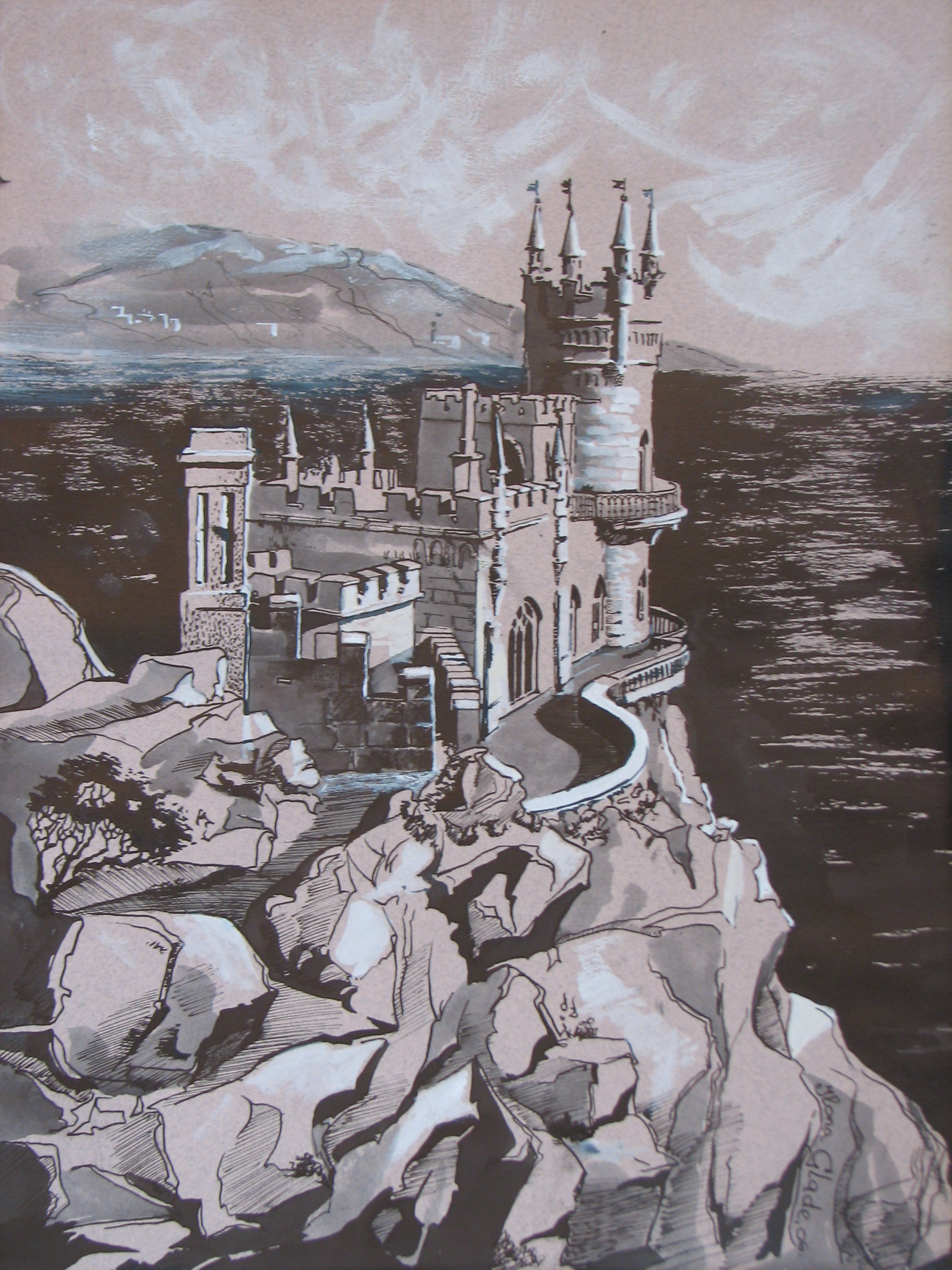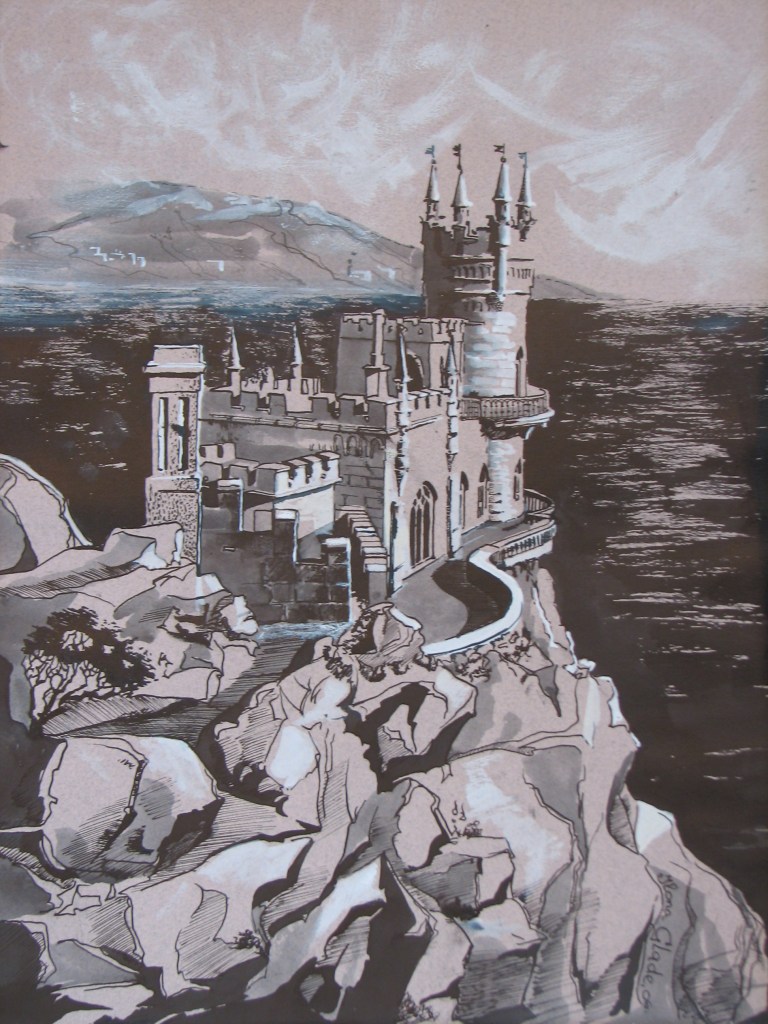 Ilona Glade: Krim, Schwalbennest (Tusche, Tempera)