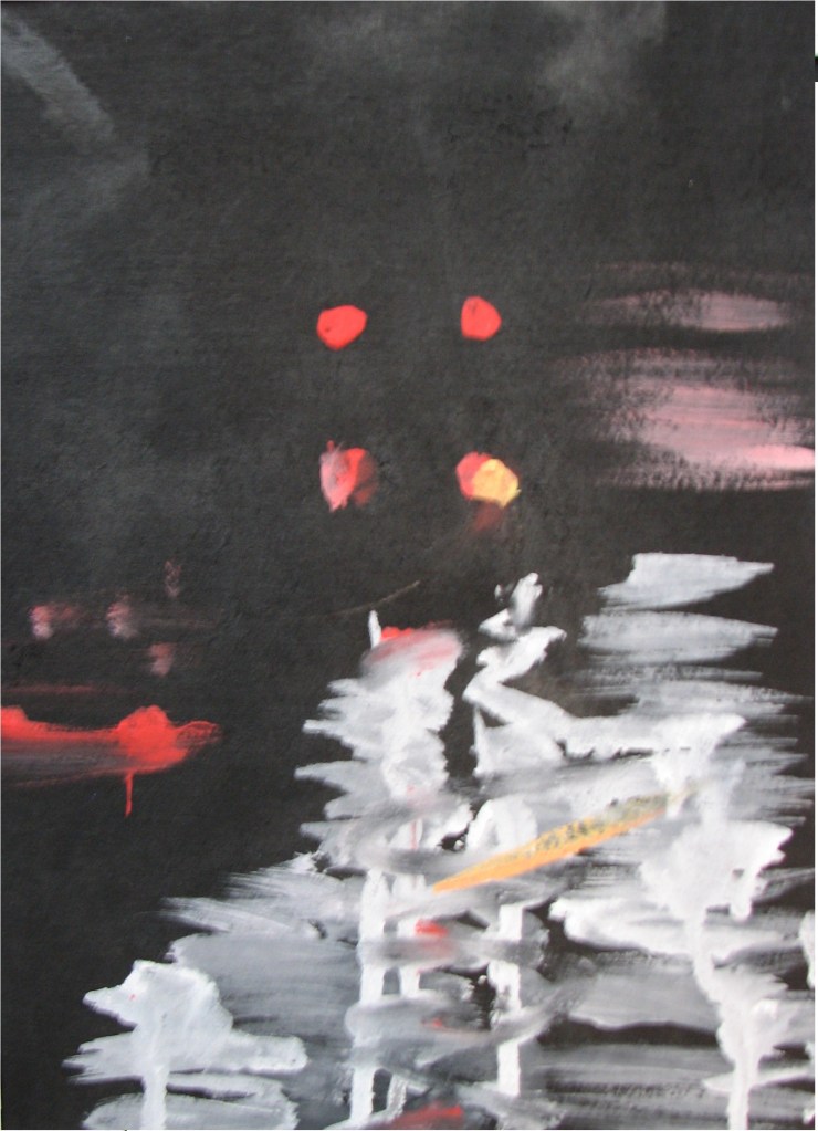 Ilona Glade: Stadt, Nacht, Regen (Tusche, Tempera)