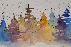 2. Landschaft malen mit Aquarellfarben auf Postkarten-Format